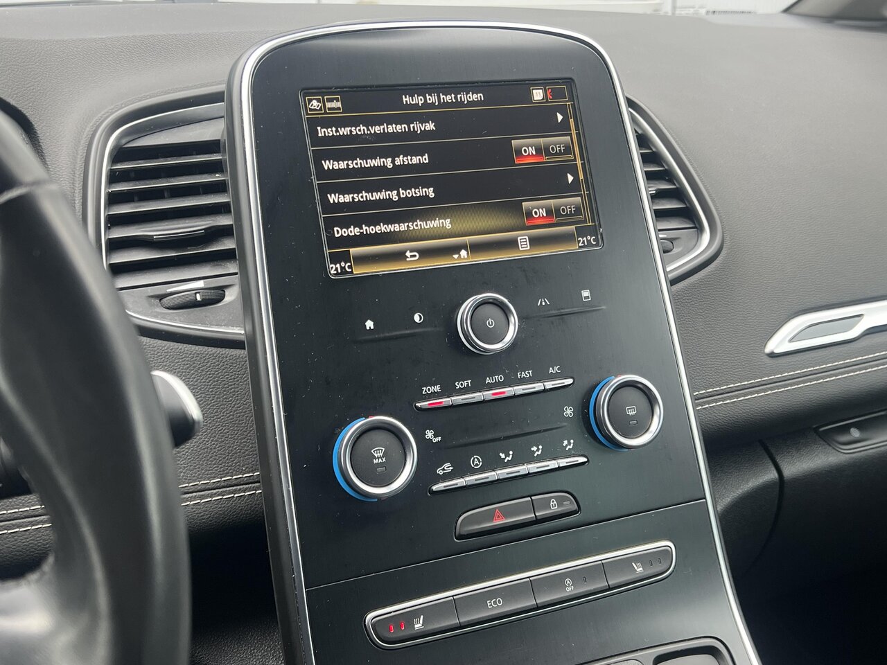 Het zwarte gedeeltelijk lederen interieur met sfeerverlichting creëert een luxueuze en aangename sfeer, terwijl de krachtige 140pk benzinemotor zorgt voor een dynamische rijervaring. Deze Grand Scenic is rijkelijk uitgerust met moderne voorzieningen die elke rit veraangenamen: denk aan het geïntegreerde navigatiesysteem met aanraakscherm, compleet met Apple CarPlay en Android Auto voor naadloze smartphone-integratie. Parkeren wordt een fluitje van een cent dankzij de parkeersensoren mét camera, en het comfort wordt verder verhoogd door zetelverwarming en automatische 2-zone klimaatregeling. De handige Keyless Entry functie en de stijlvolle LED koplampen en dagrijverlichting maken het plaatje compleet, wat bijdraagt aan zowel het gebruiksgemak als de veiligheid.